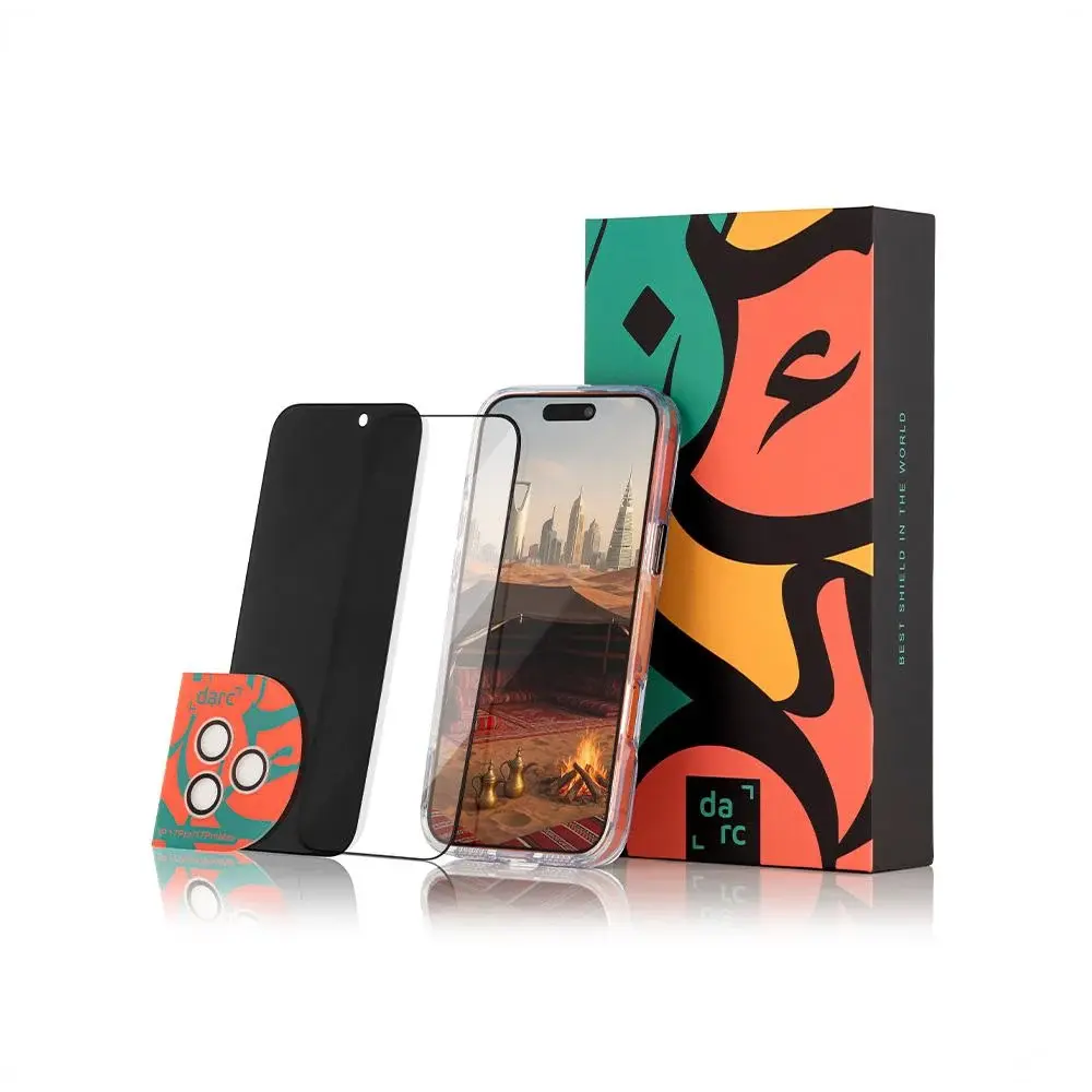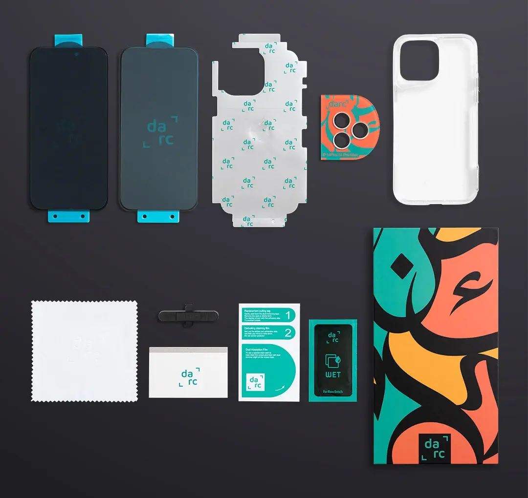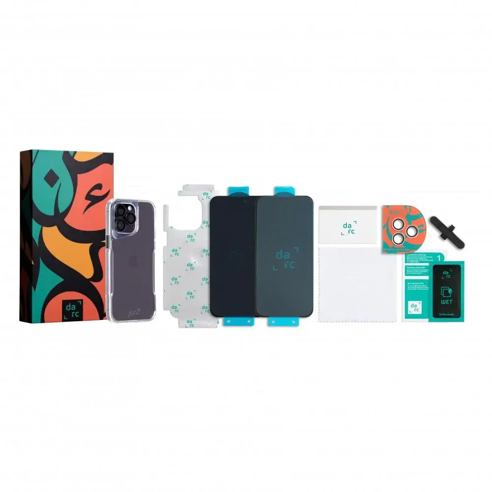 اليرموك الذهبي | دارك - باكيج 5 في 1 - لآجهزة الايفون 15 بلس - في حال كسر الشاشه الاماميه او الخلفيه يتم تعويض لغاية 140 دينار كويتي